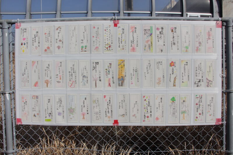会場では、毎年恒例の七隈小学校、七隈中学校の生徒さんによる梅の俳句や短歌の展示もありました。