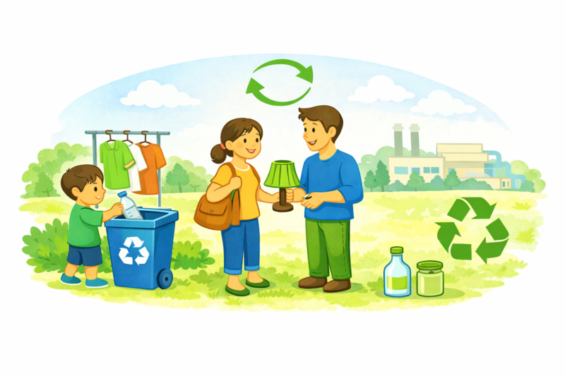 - フリーマーケットやガレージセール等を開催し、不用品の再使用に努める。